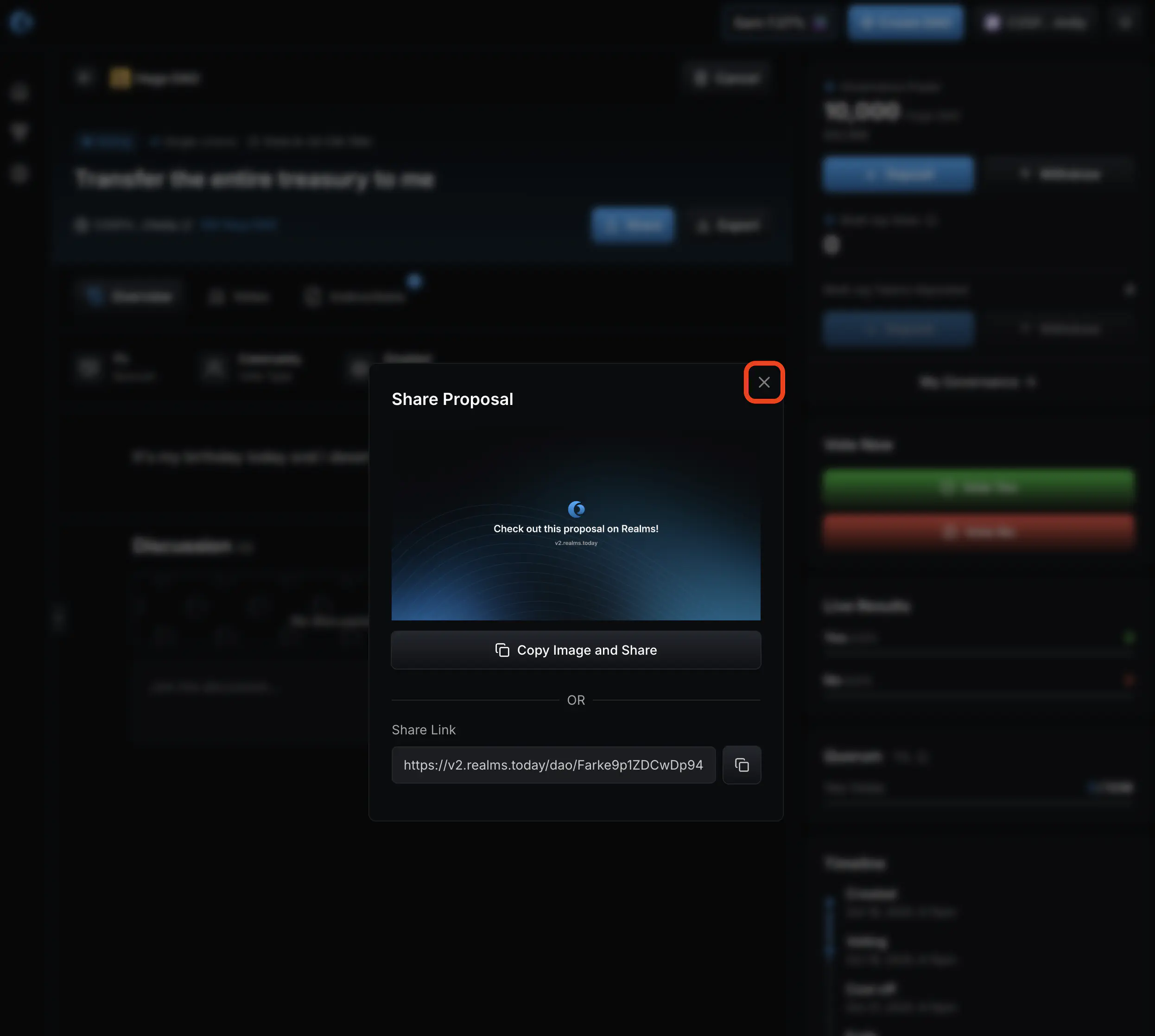 - Your proposal has now been created! If a share dialog is shown, close it.