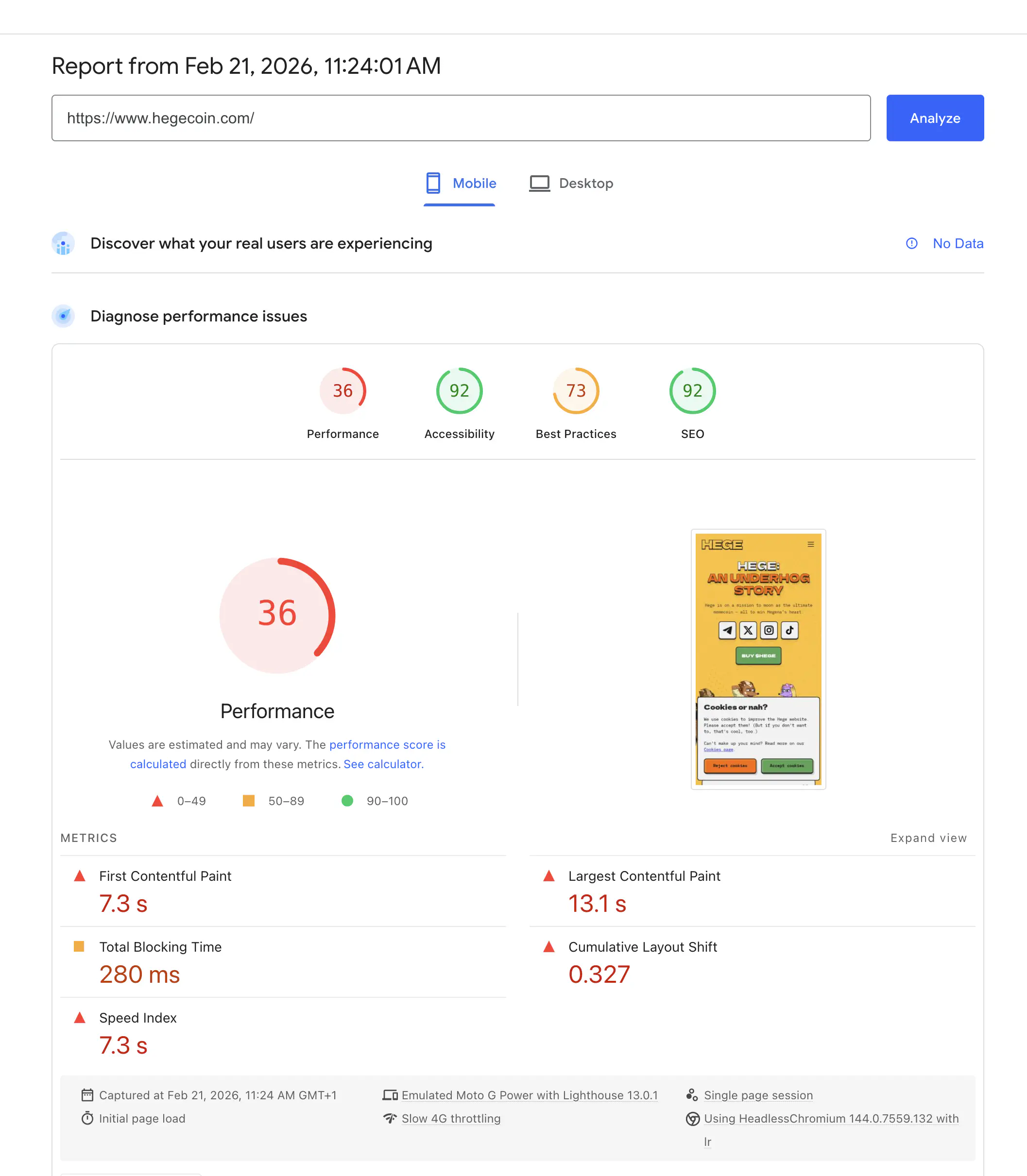 This is what the report looked like for the old version of the Hege website, before our dear Speedmaster Monkey got to work. Not great.