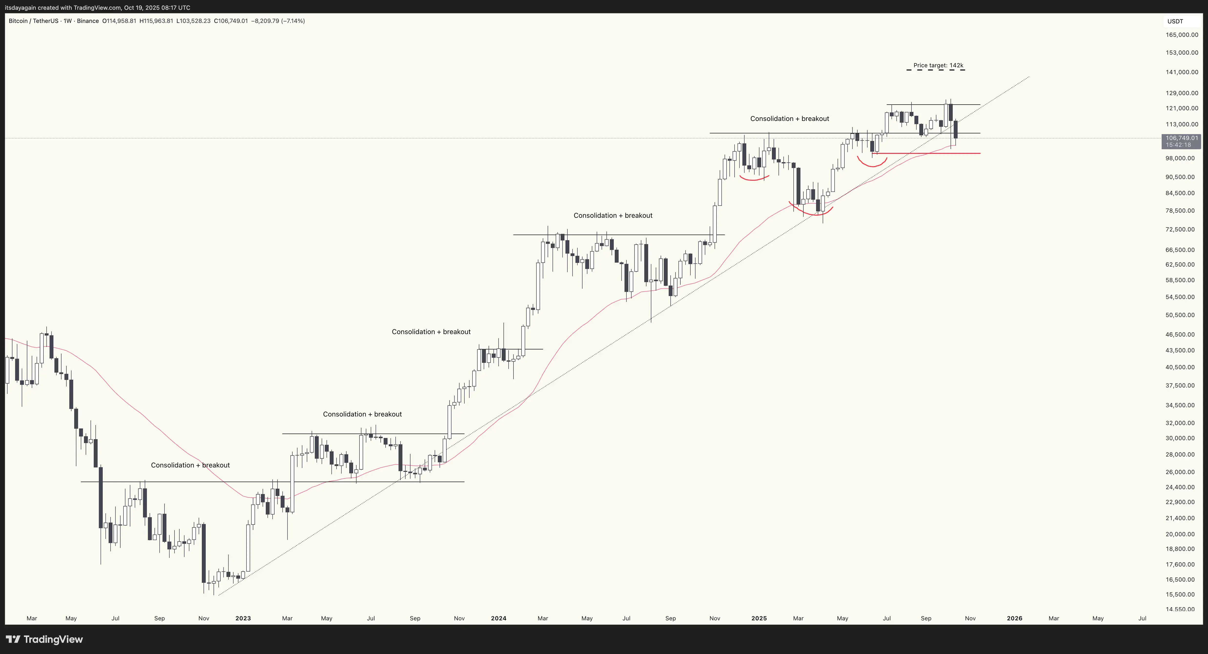 Chart-wise, the week has not closed yet, but it looks like bitcoin will close the week below the $109k level that has held as support all the way back since early July. Though we’ll have to wait until tomorrow to see exactly where it closes.